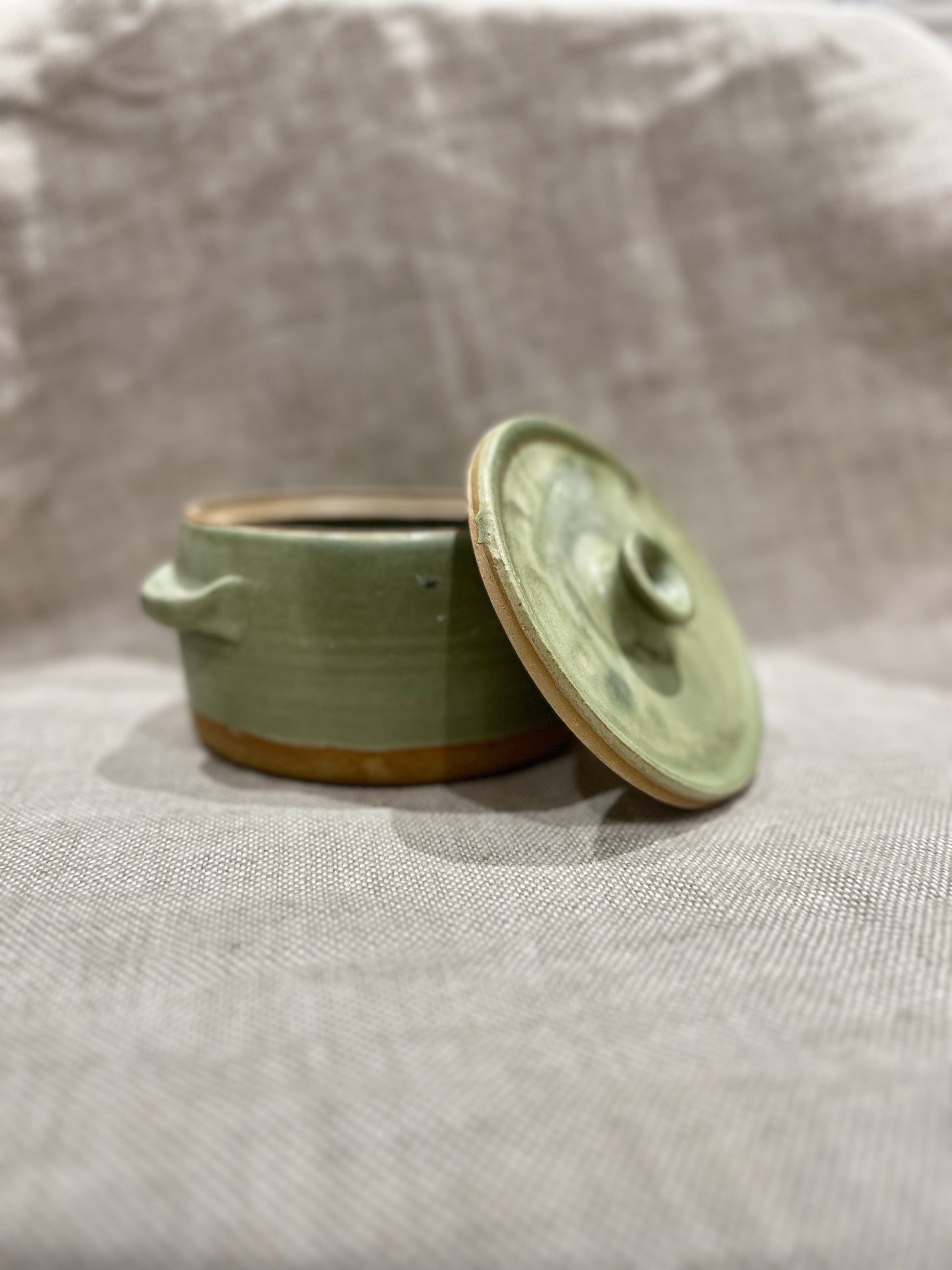 Mini casserole dish in Meadow Green Glaze.